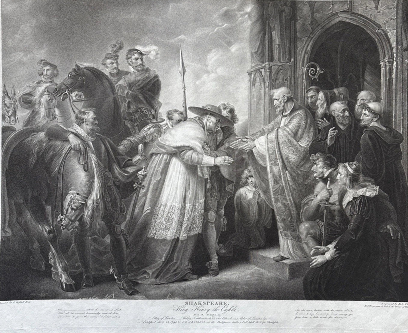 Antique engraving "SHAKSPEARE King Henry the Eighth" by Robert Thew, after a painting by Richard Westall.